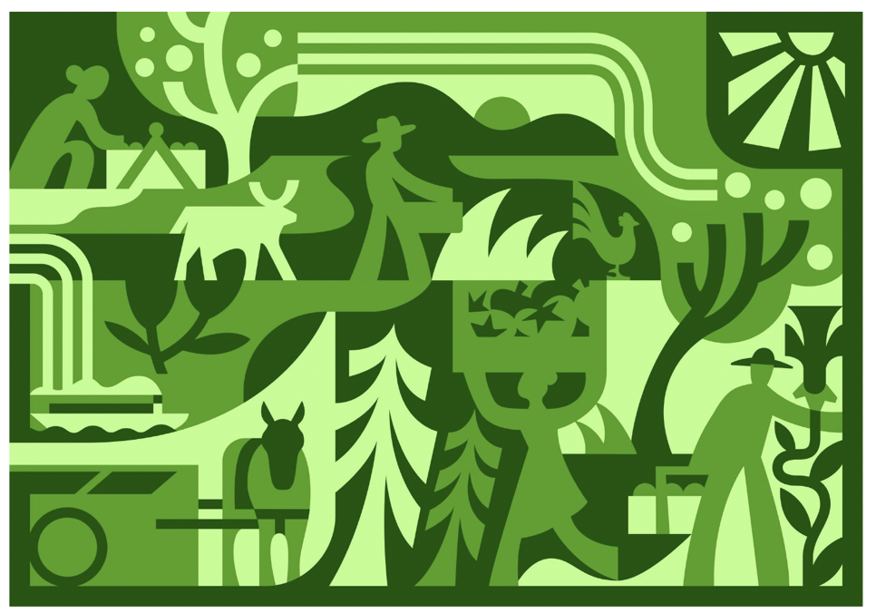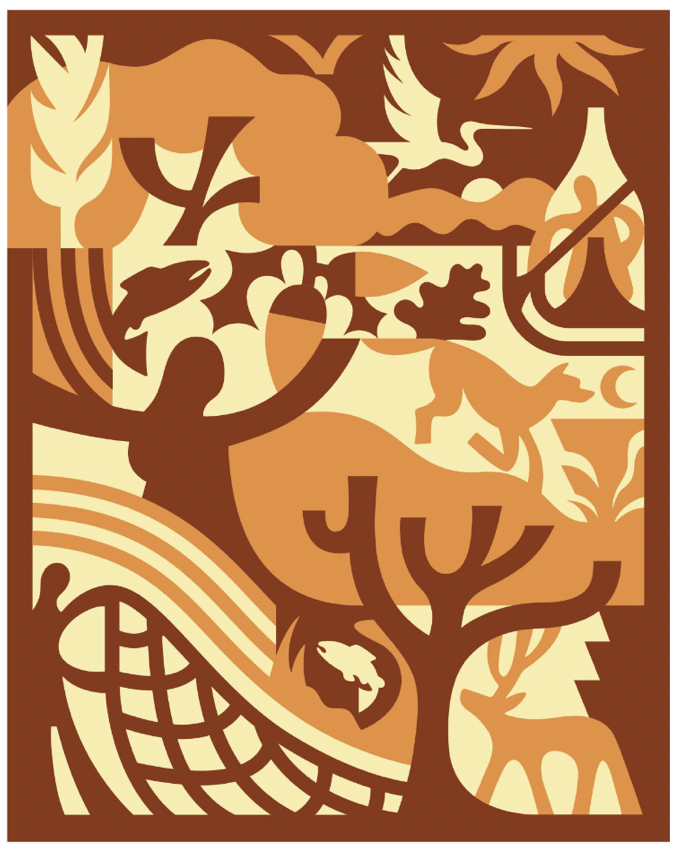 - Cottonwood - Poppy - Bay Laurel - Red-Tailed Hawk - Deer - Holly Leaf Cherry - Hiker - Coyote Bush and Flower - Arroyo Willow - Chickens from Deer Hollow Farm - California Newt - Monarch Butterfly - Quail and Valley Oak Leaf - Family interacting with nature