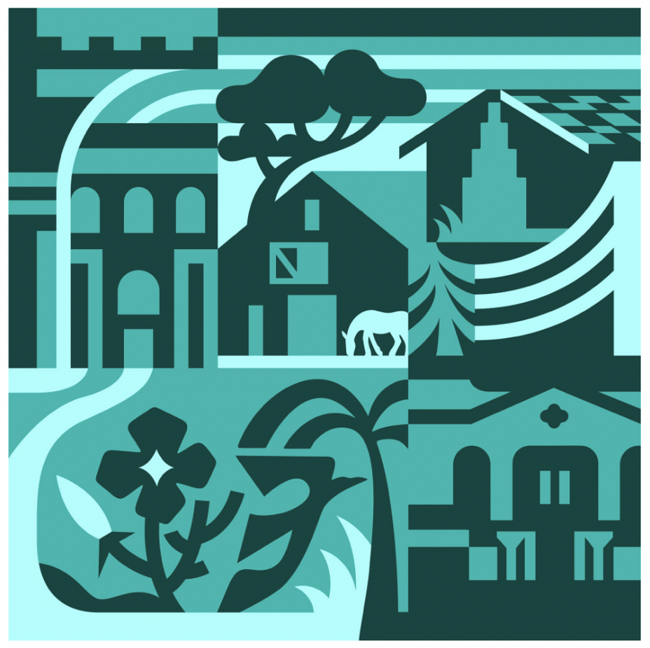 A hiker explores Rancho San Antonio, part of a family interacting with nature, pausing to observe, to wonder, and to feel part of something larger. Whether it's the call of a bird, the rustle of leaves, or the sight of a coyote slipping into the brush, this mural honors the quiet magic of everyday encounters with the natural world. From the bayshore to the foothill's nature is shared, lived, and deeply cherished.