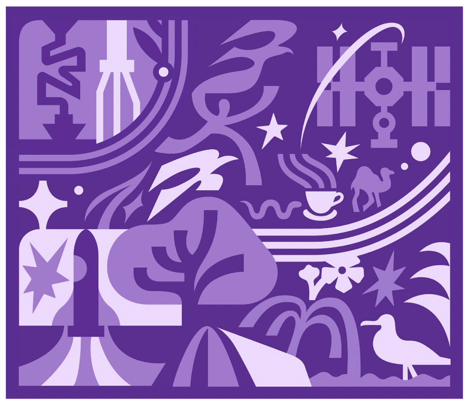 - Original Transistor Invention and integrated circuit - Circuitry - Person and Birds in the stars - International Space Station - Coding Languages (Python, Java, Perl) - Nasa Space Shuttle - Moffett/Hangar One