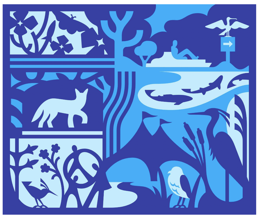 This mural panel celebrates the vibrant ecosystems and shared spaces of Shoreline and Stevens Creek, where wildlife, water, and community intertwine in the heart of Mountain View.